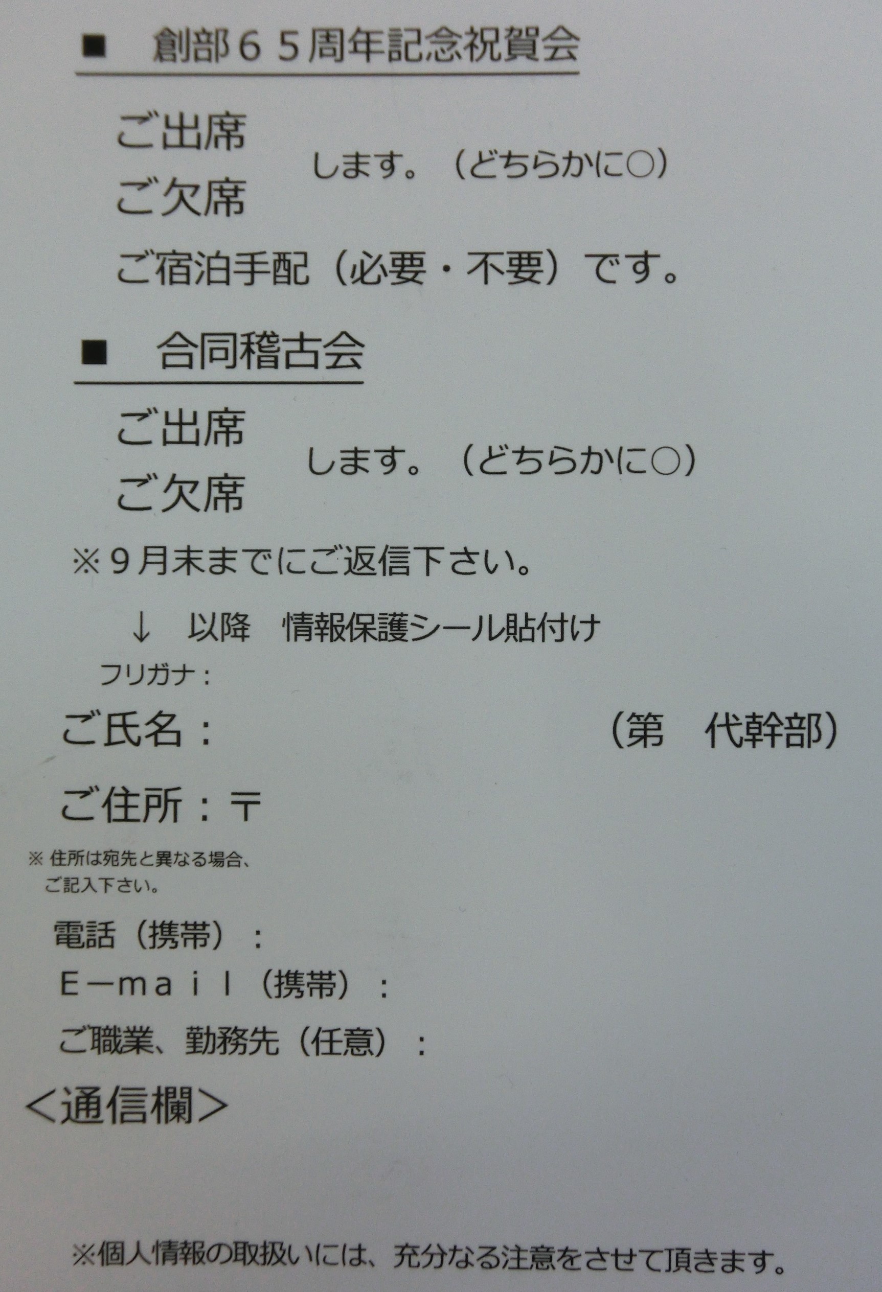 65周年案内1.JPG  65周年案内2.JPG  返信ハガキ.JPG