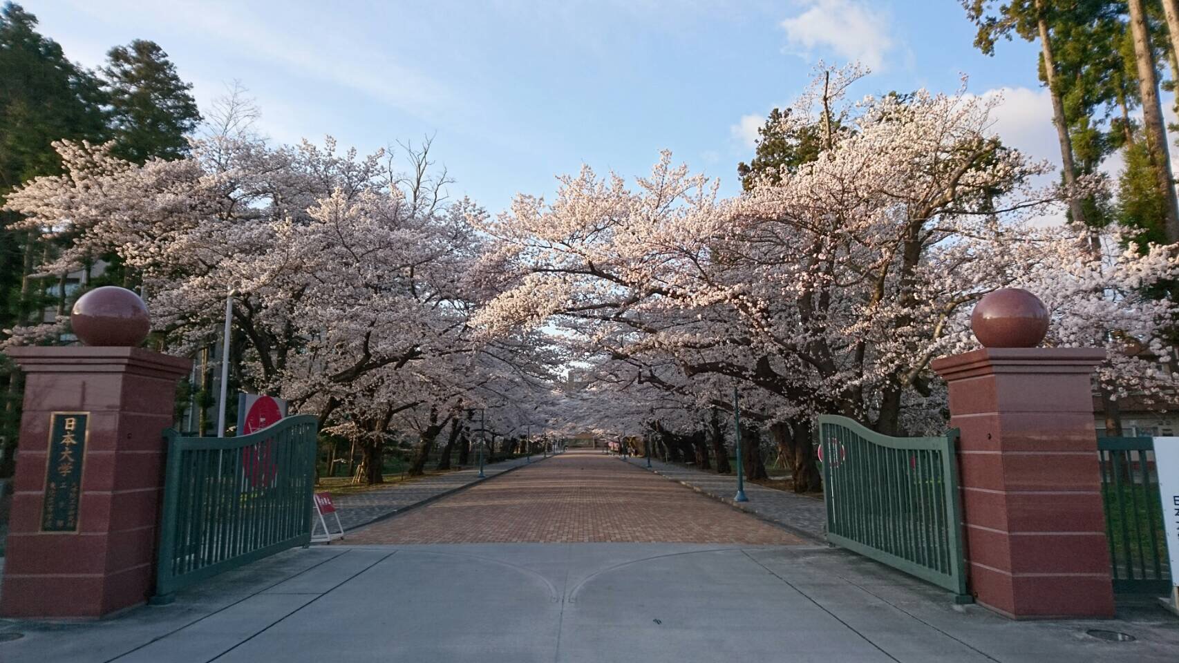日大工学部正門の桜がきれいに咲いています。